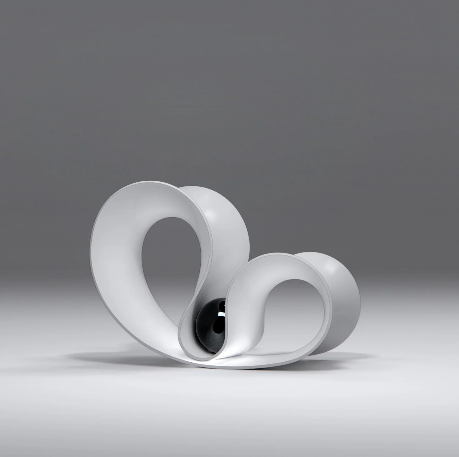 The chair is born from a definitive moment of contact: a heavy sphere pressing into a structural loop. This interaction forces the loop to yield through natural compression—a singular gesture that simultaneously defines the chair’s functional anatomy by sculpting the backrest, seat, and leg rest into a seamless, ergonomic profile. As the material curves further under the sphere’s weight, the base transforms into a functional rocker. Ultimately, this project illustrates the power of a simple intervention to create complex architectural utility, proving that form and function are often the result of a single, decisive action.