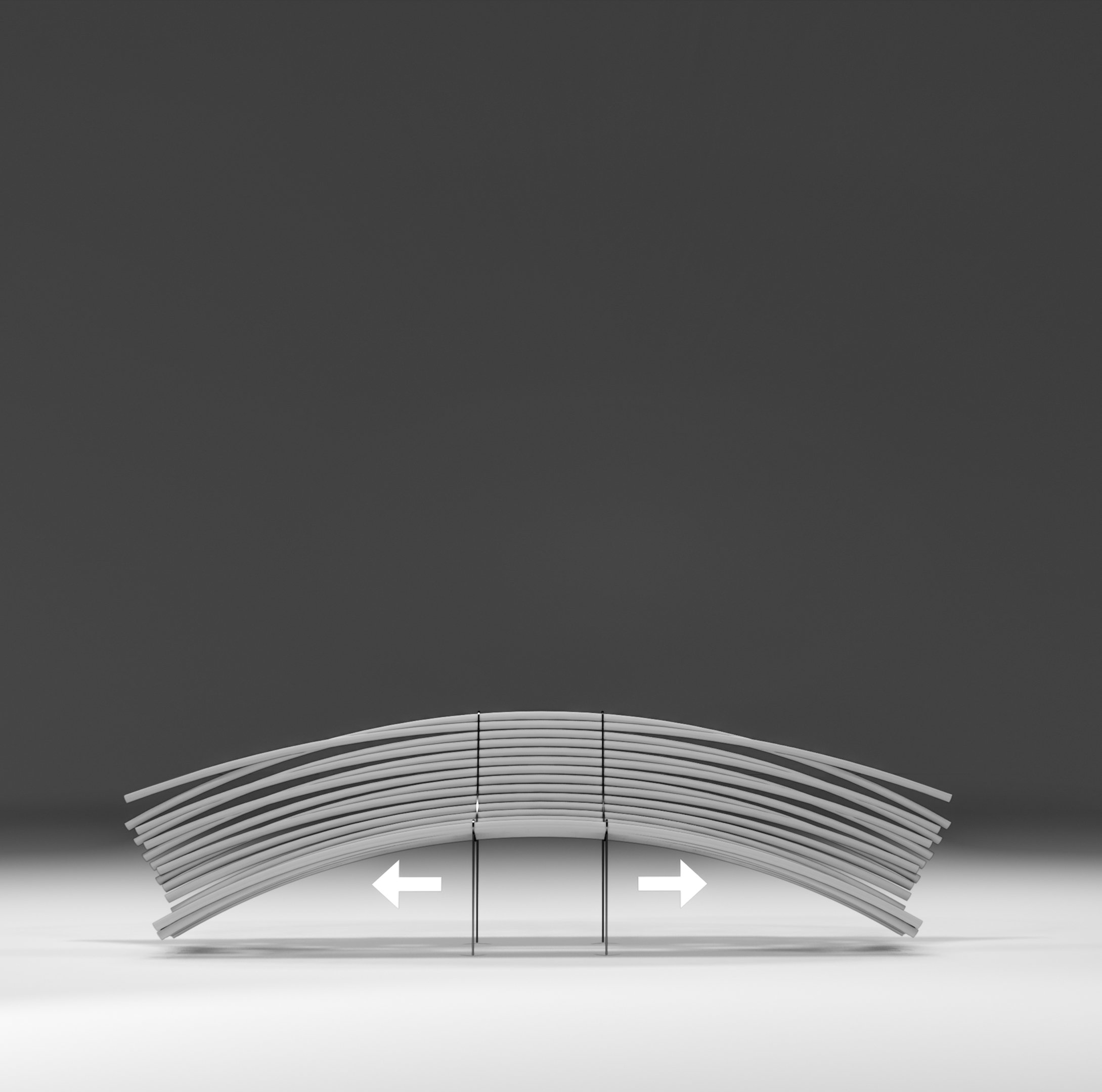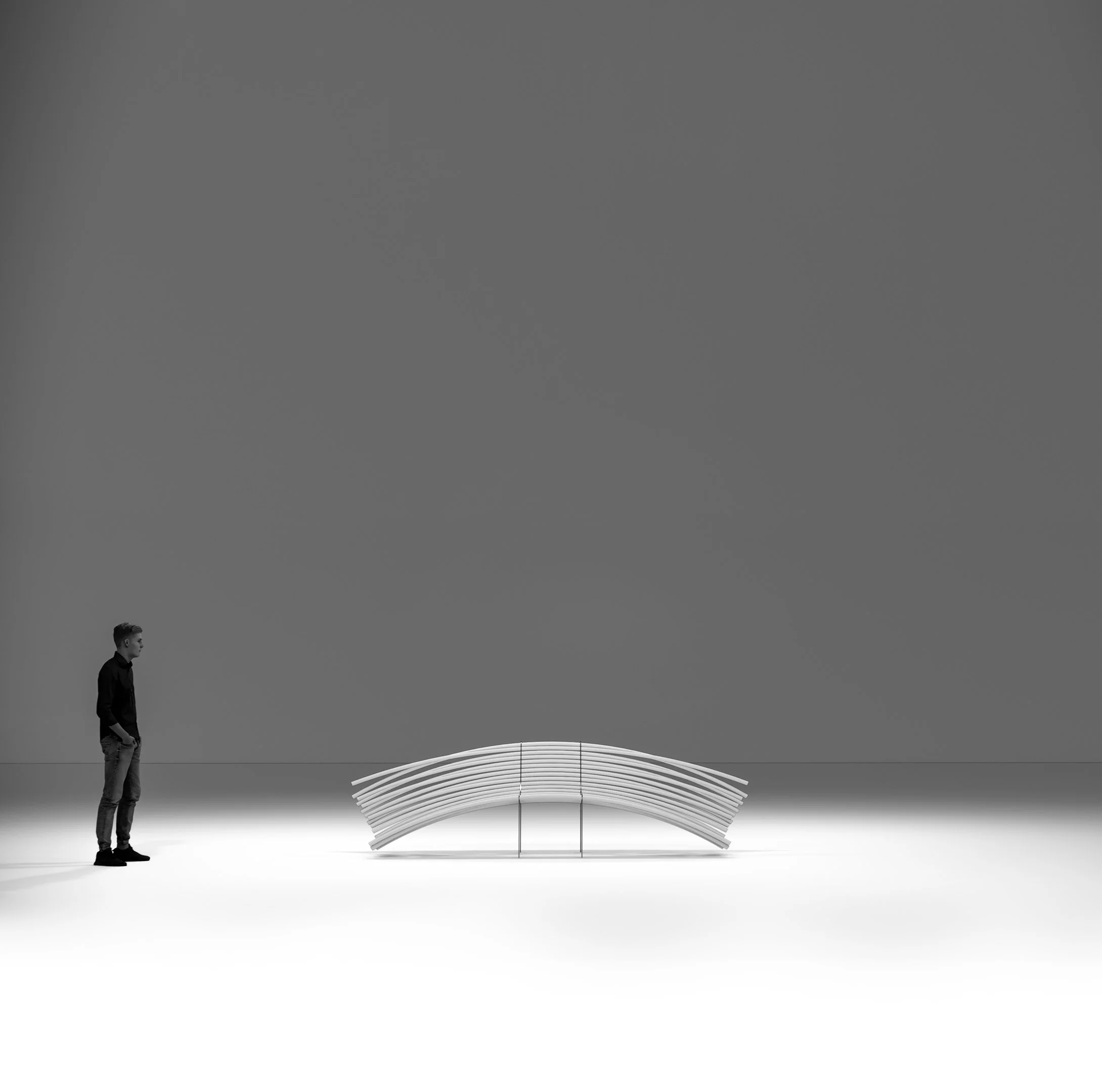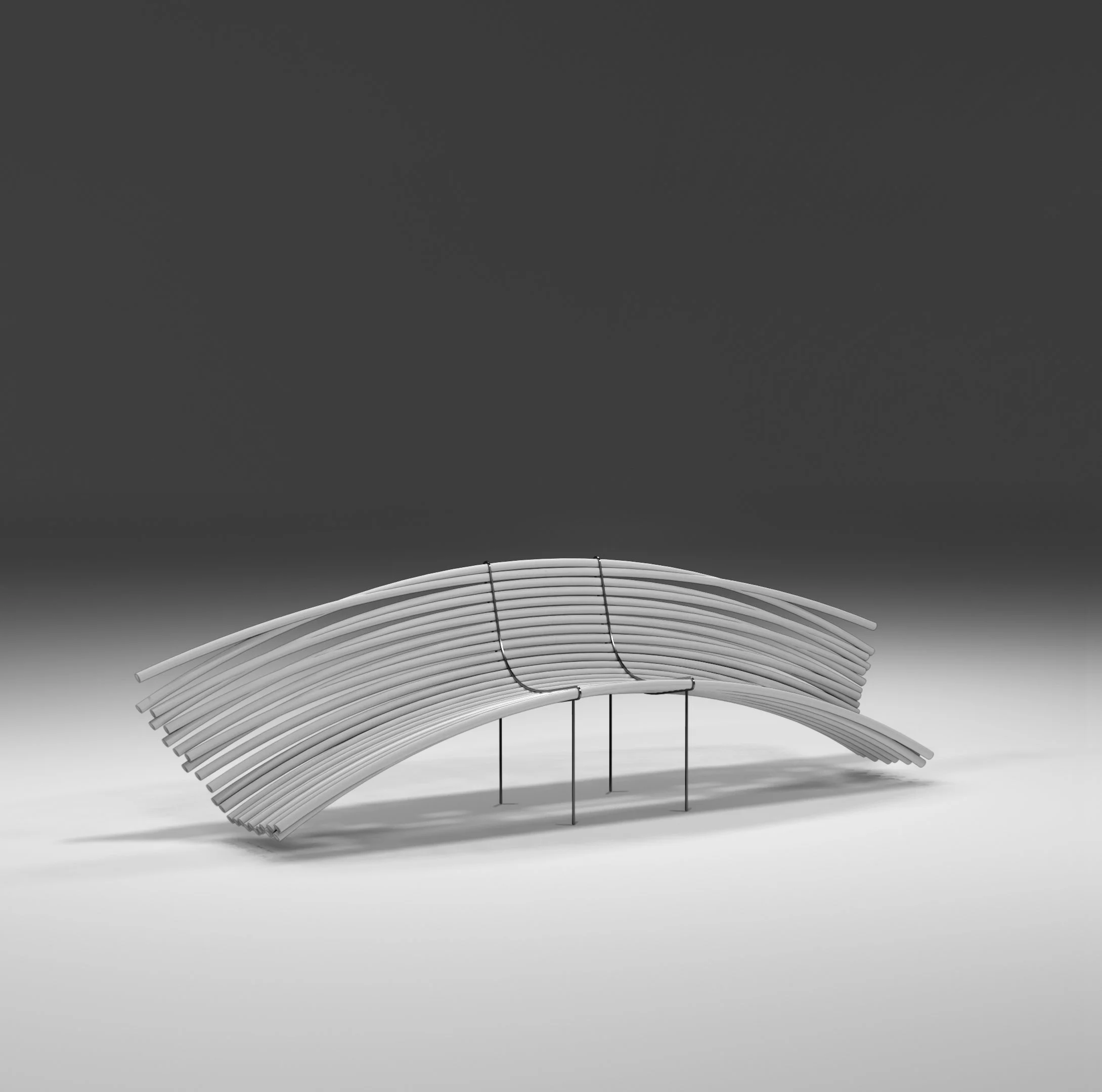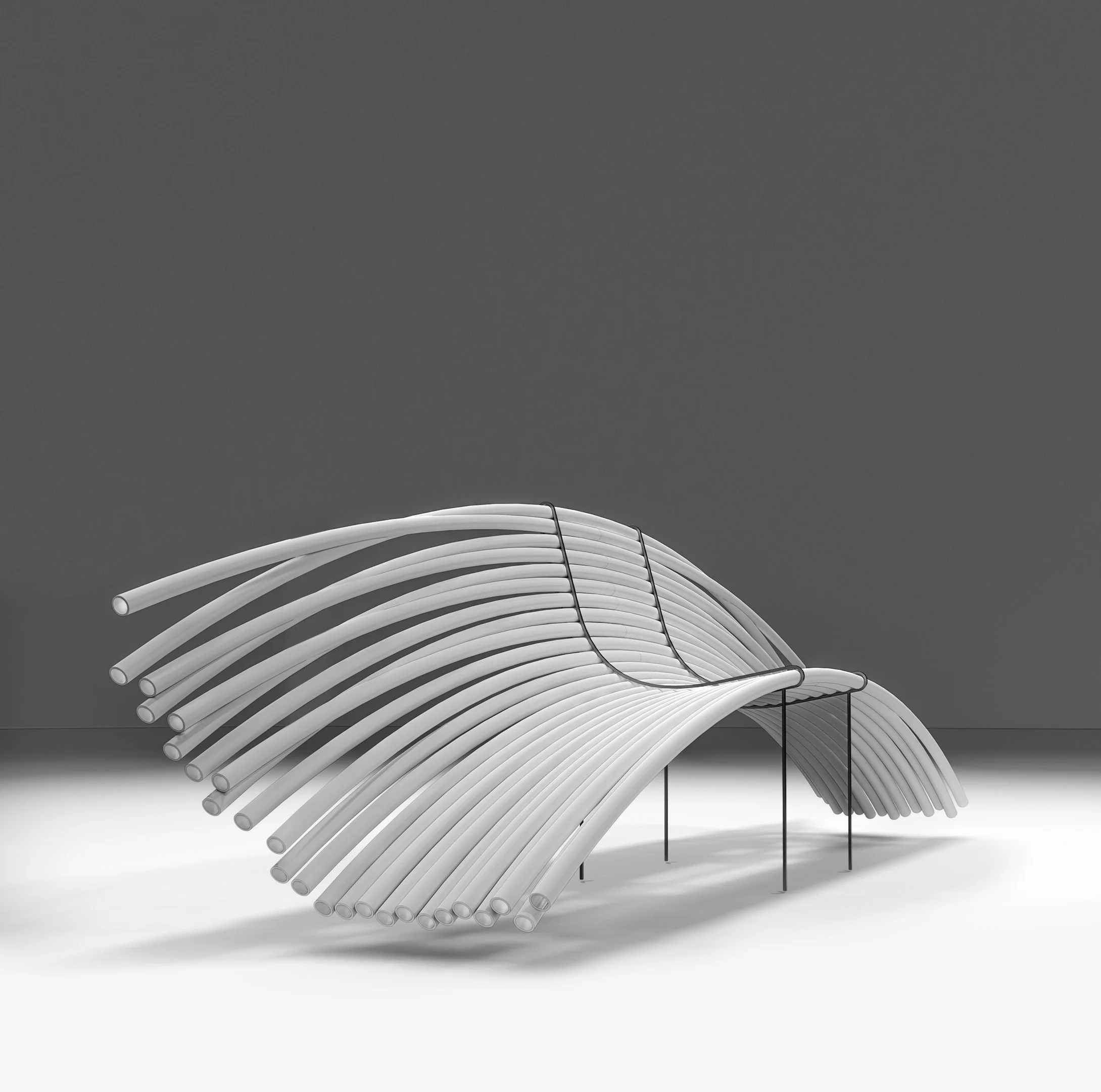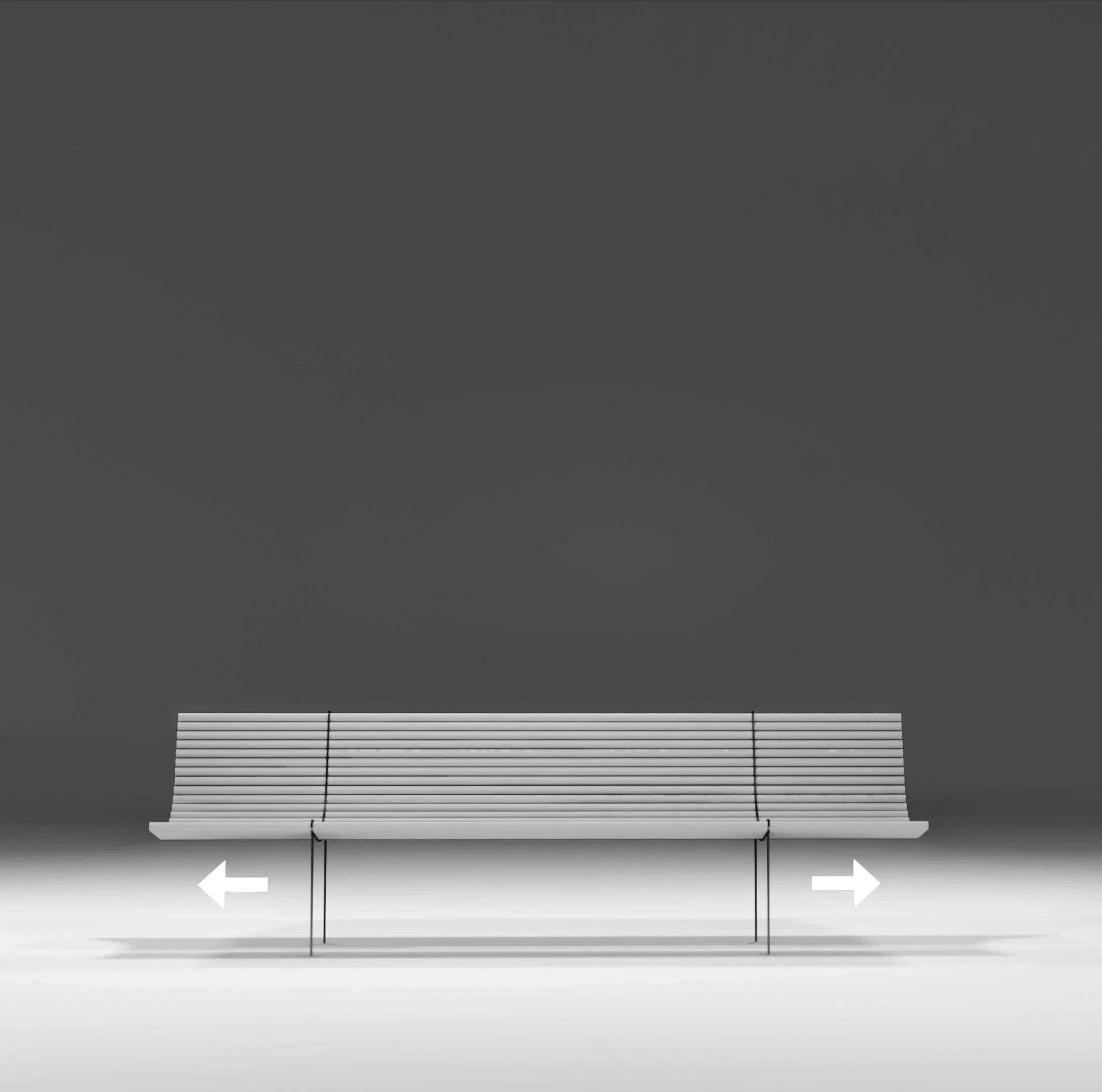 Meet the chair that grows! This chair features lightweight plastic tubes that cantilever elegantly beyond its edges. Designed for motion, the frame glides along a system of sleek pipes, allowing the object to extend its linear footprint with ease. This movement is more than functional—it is a transformation. With a single, intuitive gesture, the frame reconfigures the object's spatial boundaries, allowing it to evolve seamlessly from an intimate chair into an expansive bench and back again.