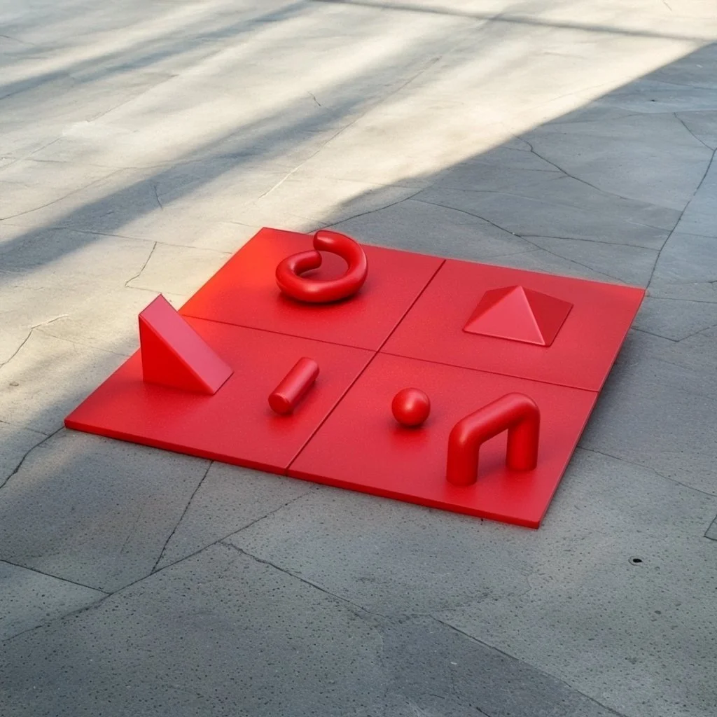 The sofa undergoes a metamorphosis from a traditional seating object to a dynamic, interactive sculptural environment. The juxtaposition of a static, top cushion with a stretching base creates tension and visual interest. As the sofa elongates, the top cushion becomes a focal point, asserting its presence within the composition. The introduction of cushion elements transforms the sofa into a sculptural garden, inviting interaction and exploration. The use of Noguchi-inspired shapes adds a playful and organic element to the composition, blurring the lines between art and functional design and encouraging creative engagement. The sofa becomes a platform for experiential seating, encouraging users to engage with the sculptural elements and redefine their relationship to the object.
