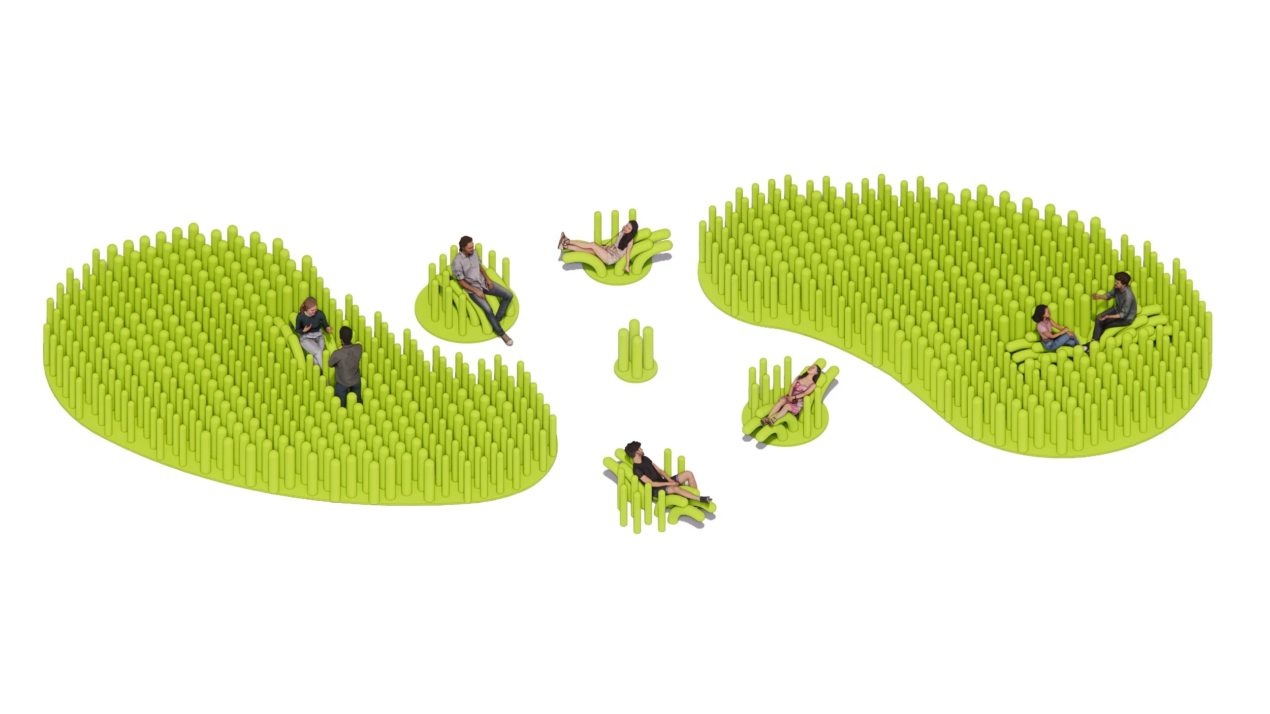 This project seeks to cultivate a symbiotic relationship between human and environment through the medium of seating. Inspired by the meadow's ephemeral yet resilient form, we aim to create a seating system that is both organic and interactive. The meadow, a singular entity composed of countless individual blades, serves as a metaphor for a community defined by its interconnectedness. Its ability to yield and recover under pressure mirrors the dynamism of human interaction. Like a meadow sheltering life, our design aspires to be a sanctuary for rest, reflection, and social engagement. The Grassnook emerges as a living sculpture, responding to the touch of its inhabitants. Its form is fluid, adapting to various postures and spatial needs. Through this interplay, a dialogue between user and object is initiated, fostering a sense of ownership and intimacy. The Grassnook is not merely furniture, but an ecosystem in miniature, inviting exploration and discovery. As the meadow’s blades vary in thickness and height, so too does the Grassnook offer a spectrum of experiences. From solitary contemplation within the taller blades to communal gathering in the open expanse, the design provides a versatile platform for human connection. The Grassnook is a testament to the power of nature's forms to inspire innovative and experiential design. Ultimately, this project is an invitation to reconsider our relationship with objects and spaces. By blurring the boundaries between art, design, and nature, we hope to create a seating experience that is both functional and evocative, a place where the human spirit can flourish.